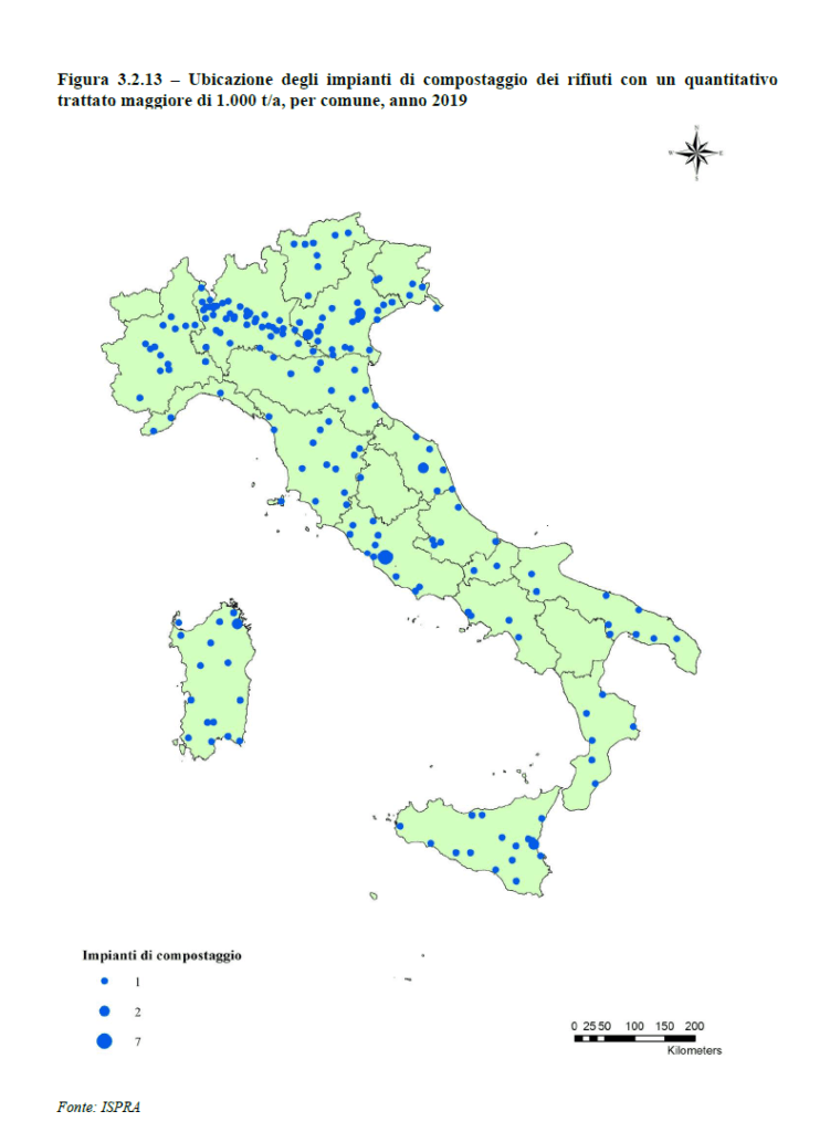Questo sarebbe veramente preoccupante. Ad ogni modo, bisogna dire che l’origine del problema è nell’oggettiva incapacità delle regioni meridionali di trattare i rifiuti sul proprio territorio. A questo proposito il Rapporto Ispra è impietoso. Tra i tanti esempi che si potrebbero fare, basta osservare il grafico del Rapporto riportato di seguito, dove si può notare come la Basilicata sia totalmente priva degli impianti di compostaggio, dove dovrebbero essere destinate le frazioni di umido.