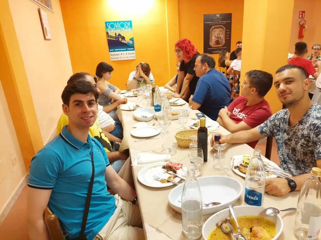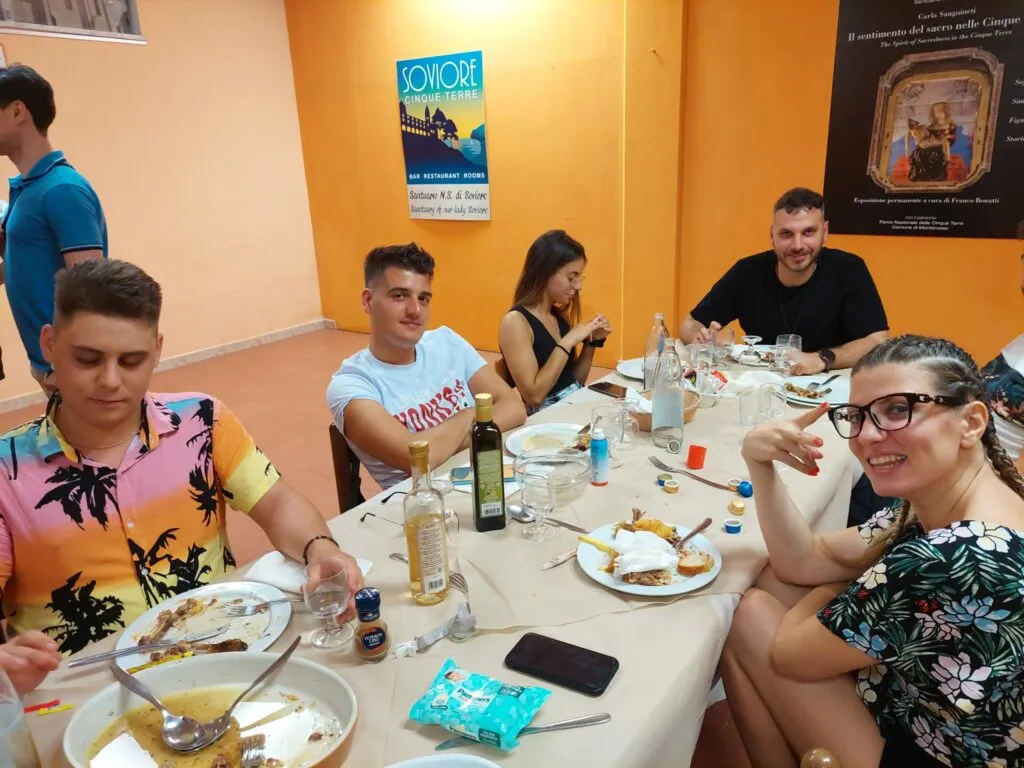 La prima tappa: Monterosso, un borgo delle Cinque Terre dove abbiamo alloggiato presso il Santuario di Nostra Signora di Soviore. “Un luogo per affidare le nostre speranze e anche i nostri timori a Maria con la certezza che lei ci accompagnerà in questa avventura!”. Ma i più curiosi e arditi, a passaggio o a piedi, sopportando gli oltre 400 m di dislivello – percorribili in un’ora attraverso un faticoso sentiero o in due ore attraverso la strada asfaltata – non hanno rinunciato a un veloce bagno nelle azzurre acque liguri o a due passi in questa località del turismo VIP.