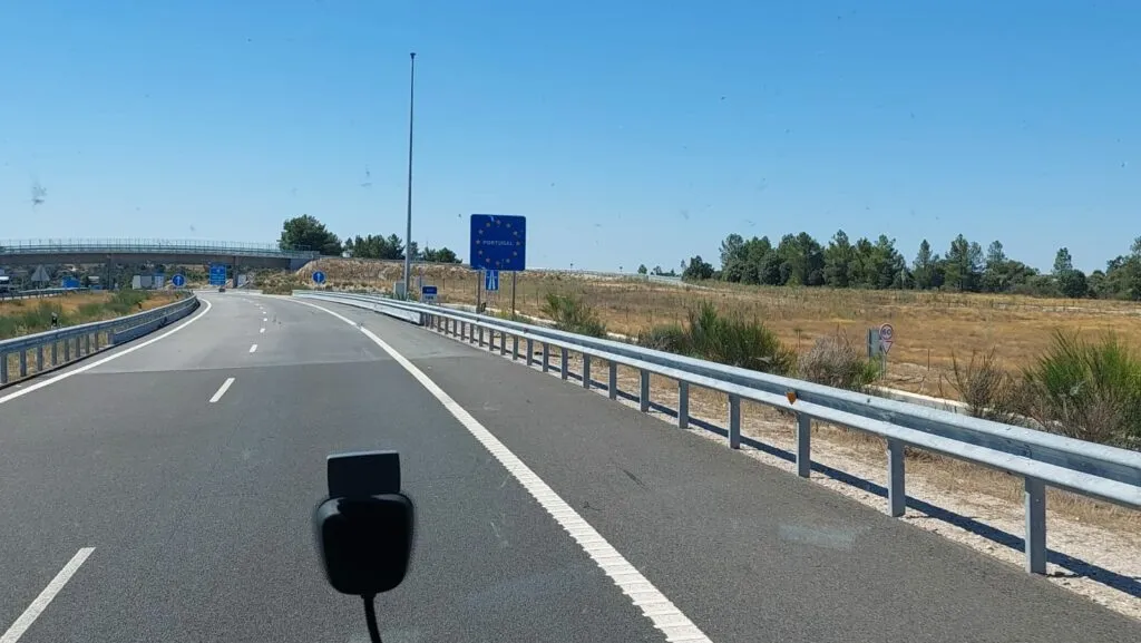 Oggi stiamo passando per tre Stati: Francia, Spagna e Portogallo. E proprio ora stiamo verificando sulla Mappa quanto ancora ci manca per la meta. Siamo sempre più vicini ma ci separano 6-7 ore di viaggio.