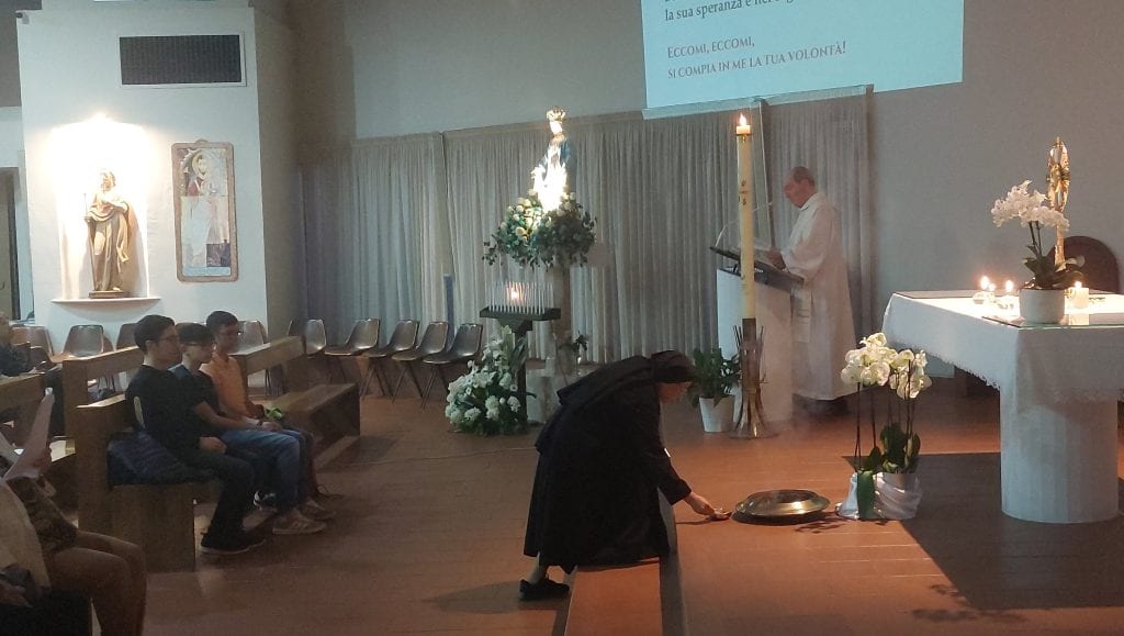 Il programma giornaliero prevede la preghiera liturgica delle ore, un tempo di adorazione eucaristica, la possibilità di confessarsi, un momento dedicato alla preghiera del rosario, la celebrazione eucaristica quotidiana, ogni giorno animata da una diversa categoria della comunità: bambini, famiglie, anziani, religiosi, coppie e fidanzati.