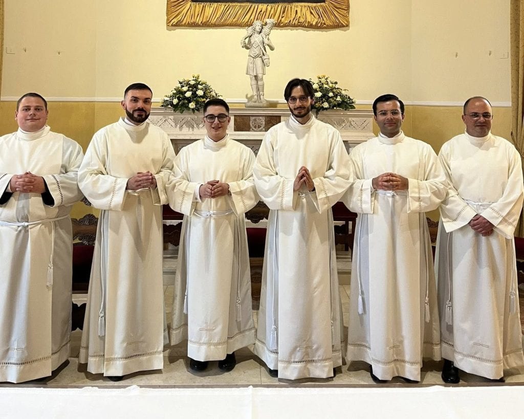 I seminaristi che riceveranno l’accolitato: da sinistra, Biagio Scelzi, Emanuele Regina, Pasquale Bernalda, Luigi Salvia, Nunzio Ciliero, Francesco Lacava
