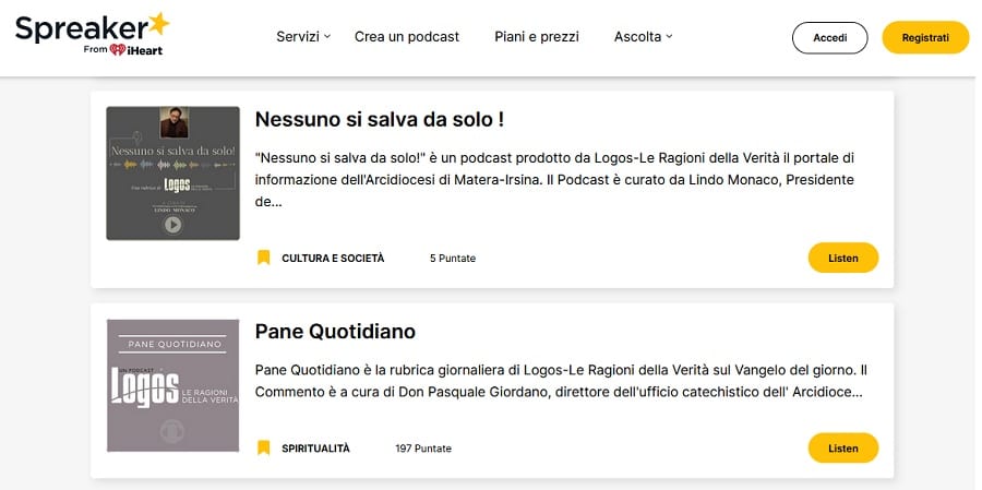 L’8 febbraio, l’editore Terre di Luce inaugura un canale podcast di Logos, con la rubrica quotidiana “Pane quotidiano”, un commento al Vangelo del giorno curato da don Pasquale Giordano. A questa, si aggiungeranno via via anche altre rubriche podcast come “Nessuno si salva da solo!”, curata da Lindo Monaco, Presidente della Consulta Regionale delle Aggregazioni Laicali di Basilicata e del Parco Culturale Ecclesiale Terre di Luce. Altro podcast, diffuso nei giorni della Settimana Santa, è “Le sette parole di Gesù in Croce” con testi di don Filippo Lombardi e musica di Lindo Monaco.