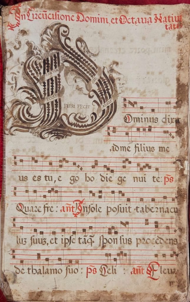 Dopo la chiarissima esposizione dello storico dell’arte Gabriele Scarcia è opportuno inquadrare la mostra in un’ottica più generale compito che affidiamo al parroco don Egidio Antonio Musillo: «Carissimi, siamo lieti di presentare una nuova mostra nella nostra antica e beneamata chiesa parrocchiale di Santa Maria Maggiore in Miglionico. Questa volta oggetto della mostra sono alcuni corali e messali antichi che hanno attraversato secoli di storia e innumerevoli generazioni di fedeli miglionichesi. Essi ci rivelano l’importanza della chiesa matrice in quanto “Collegiata” ma anche la devozione di un popolo verso il Santo Patrono, cioè Sant’Antonio di Padova. Antica, infatti, è la fede verso il santo patavino soprannominato “Il Santo dei miracoli”, per l’impressionante numero di miracoli da lui operati. In vista allora della festa patronale, si è pensato di allestire la mostra nell’omonima cappella – una delle più belle e simboliche presenti nella nostra chiesa – al fine di dare slancio e profondità culturale ai festeggiamenti ormai alle porte. Grazie di cuore a coloro che, hanno concepito e realizzato l’evento».