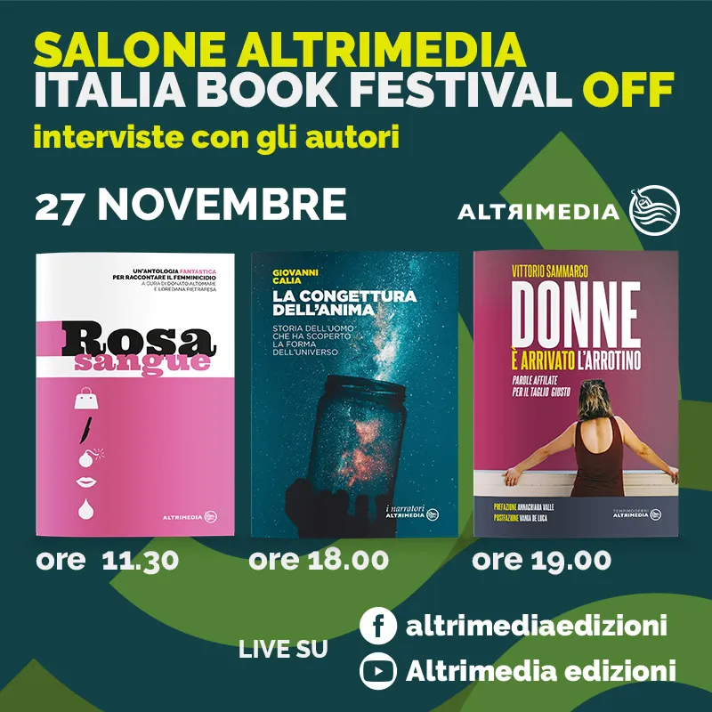 Altrimedia Edizioni partecipa da oggi al 29 novembre all’Italia Book Festival, una fiera nazionale dell’editoria virtuale organizzata dalla casa editrice Edizioni del Loggione/Damster.