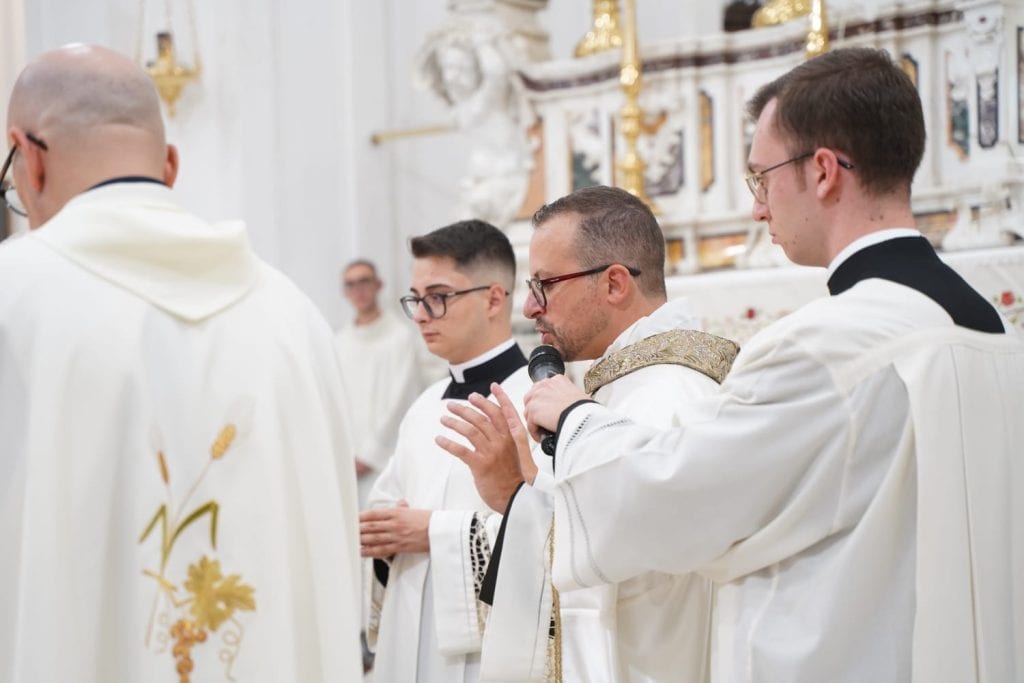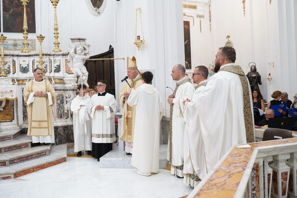 “Ogni sacerdote, scelto tra gli uomini, è chiamato da Dio per il bene degli uomini e in voi abbiamo riconosciuto una sincera apertura verso gli altri, la capacità di farvi prossimo nella sofferenza, nel dolore e nella prova. Dieci anni di sacerdozio vi hanno riempito di polvere i piedi, fatto tremare chissà quante volte e caricato sulle spalle i dubbi di chissà quante persone. Dieci anni di sacerdozio vi hanno però anche fatto sperimentare in modo incredibile la misericordia di Dio capace di prendere la debolezza umana e trasformarla in forza di fede per il singolo e per il popolo tutto”.