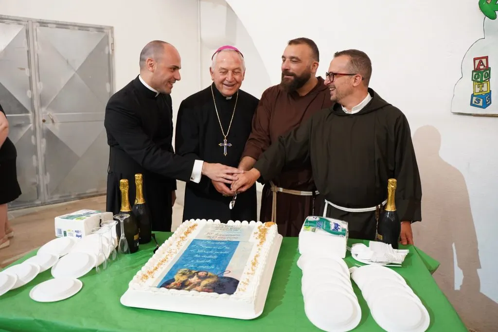 Carissimi padre Alfredo, don Nino e padre Tommaso, vi auguriamo ogni bene, imploriamo su ciascuno di voi, nella gioia di questo decimo anniversario, la benedizione del Signore, affinché voi possiate continuare con la stessa forza a prestare la vostra opera al servizio di Dio e del prossimo per molti e molti anni.