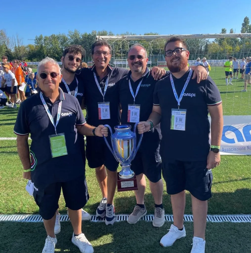 segno del passaggio di consegna nell’organizzazione della Rassegna, dal prossimo in anno a cura di un’equipe da lui guidata. Nella foto, inoltre, in secondo piano, da sinistra: Pierfrancesco Malangone, Responsabile Nazionale SportOratorio, avv. Giuseppe Dessì e don Marco Fagotti, Presidente e Vice-Presidente Nazionale ANSPI.