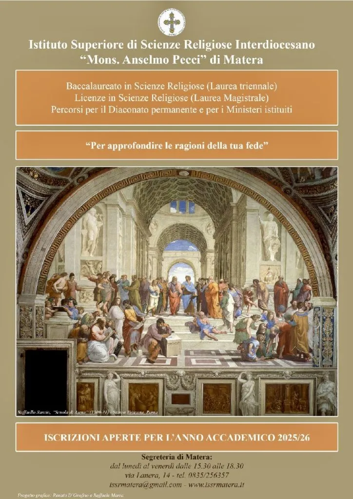 L’Istituto Superiore di Scienze Religiose Interdiocesano “Mons. A. Pecci” di Matera (ISSR) annuncia l’inizio dei corsi per l’anno accademico 2025/2026.