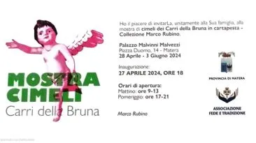 La mostra di cimeli in cartapesta di carri trionfali di varie edizioni della Festa della Bruna sarà inaugurata sabato 27 aprile alle ore 18.00 e resterà aperta dal 28...