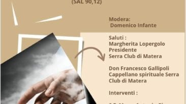 Incontro-dibattito sul tema "Sacralità della vita e i pericoli del web" organizzato dal Serra Club di Matera per mercoledì 10 maggio alle ore 16,30 presso l'Aula magna...
