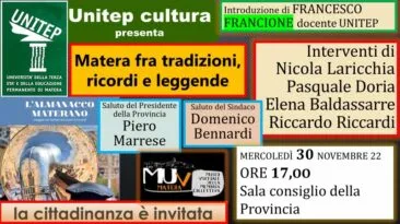 I Mercoledì di Unitep-Cultura: oggi si parlerà di “Matera fra tradizioni, ricordi e leggende” con la storica associazione del Museo virtuale della memoria collettiva
