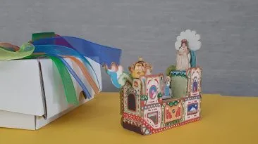 È una miniatura di una bellezza incredibile, racchiude in pochi centimetri l’essenza e il simbolo di una festa millenaria: dietro la riproduzione del carro della Bruna...