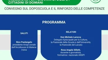 Sabato 8 febbraio, alle ore 16 presso la Sala Congressi S. Anna in Matera, si terrà un convegno promosso dall’ANSPI per riflettere sul valore educativo e pastorale...