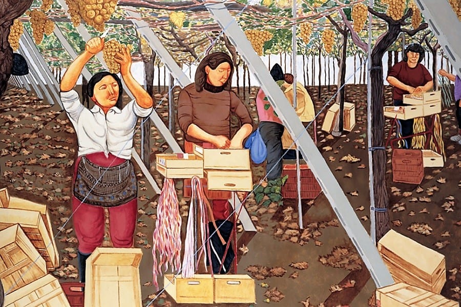 E la realtà del confinamento non poteva non rimandare all’esperienza del confino come Carlo Levi l’ha consegnata alla letteratura e alla pittura. Così come sono una vera rivelazione le opere di Luigi Guerricchio con i suoi contadini curvi nell’atto di coltivare la terra, come si vede nella tela dell’Uliveto. È l’atto di estrema umiliazione dell’uomo verso quell’humus da cui dipende la propria vita, per sottolineare quanto non sia casuale che “umano”, “umiltà”, “humus” abbiano la stessa radice.