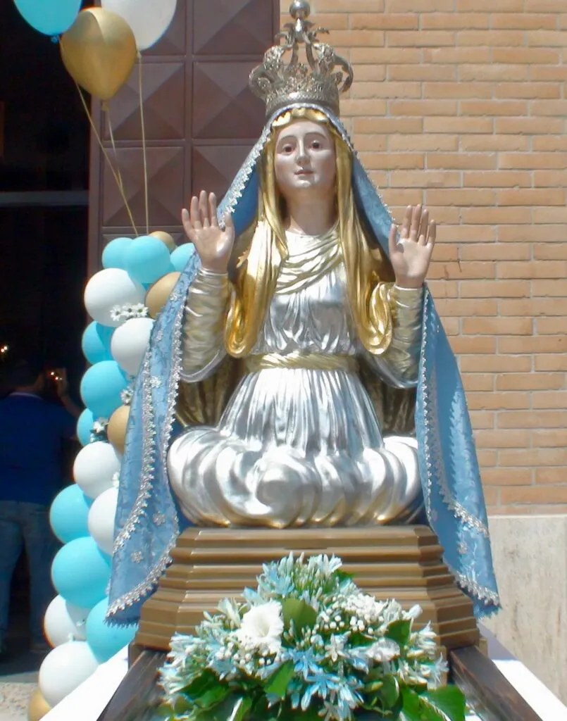Ed è proprio in occasione della transumanza si è sviluppata ulteriormente la devozione alla Madonna di Picciano delle popolazioni delle regioni limitrofe, oltre quella esistente delle popolazioni locali. Infatti, si racconta che un pastore abruzzese, dopo aver ricevuto l’apparizione della Madonna, ricevette l’ordine di costruire sul colle una chiesa in onore della Vergine, cosa che avvenne e che ha alimentato per secoli la pratica dei pellegrinaggi dall’Abruzzo fino a Picciano. Un racconto curioso è dato dal fatto che questi pastori con i loro soldi fecero costruire una riproduzione della Madonna collocata a Picciano che veneravano durante i loro passaggi. Ma in un’occasione, contrariati da un divieto imposto dai cavalieri del Feudo, trafugarono la statua e se la portarono nella chiesa di Santa Caterina di Castel del Monte in provincia di L’Aquila, dove attualmente ancora esiste.
