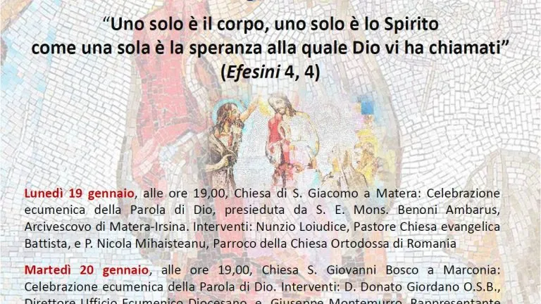 Un solo corpo e un solo Spirito, come una sola è la speranza alla quale siete stati chiamati (Ef 4,4).