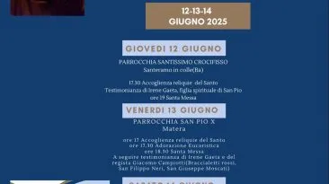 Dal 12 al 14 giugno la peregrinatio tra Puglia e Basilicata delle reliquie del frate cappuccino sepolto sul Gargano, primo sacerdote stigmatizzato della storia...