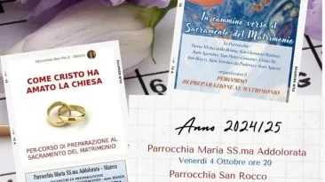 Riprendono nella Vicaria di Matera della Diocesi i cammini di preparazione al matrimonio, sacramento a servizio della comunione e della missione della Chiesa. Ecco le...