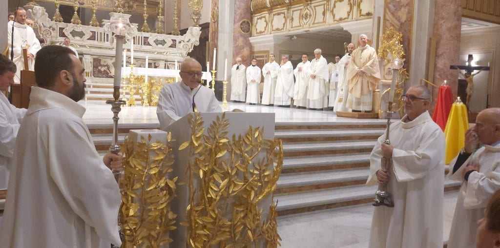 E poi, dopo l’omelia, il rito di benedizione sul presbiterio, partecipato attraverso silenzio solenne e orante dei presenti, con le parole forti che esprimono lo spirito di questo ministero che l’arcivescovo, seduto in cattedra, ha ben scandito: