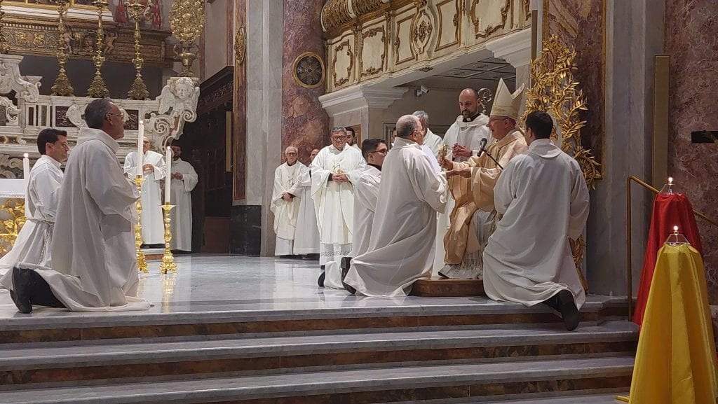 E, quindi, il rito esplicativo della consegna del calice con il vino e della patena con il pane da parte dell’arcivescovo: “La tua vita sia degna del servizio alla mensa del Signore e della Chiesa”, che poi gli accoliti hanno presentato all’altare al momento della preparazione della mensa eucaristica.