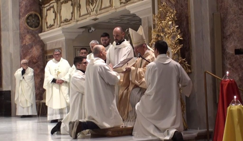 Similmente per l’istituzione dei tre accoliti, inginocchiati sul presbiterio davanti all’arcivescovo che ha pronunciato queste parole: