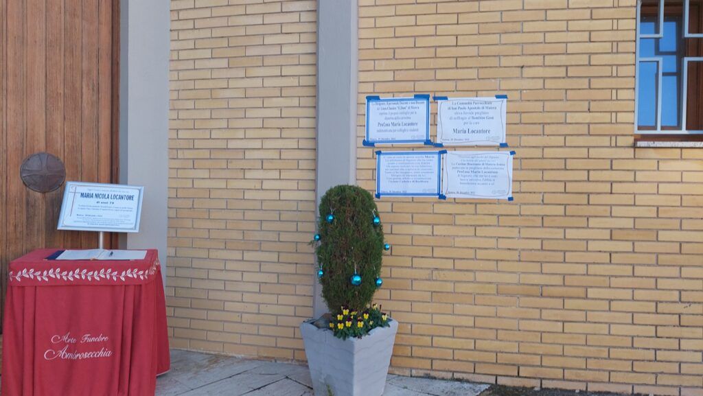 Questo è stata la parrocchia di S. Paolo di Matera (Villa Longo) tra il 29 e il 30 dicembre, dove è stata posta per la veglia la salma di Maria Locantore per gli ultimi saluti.