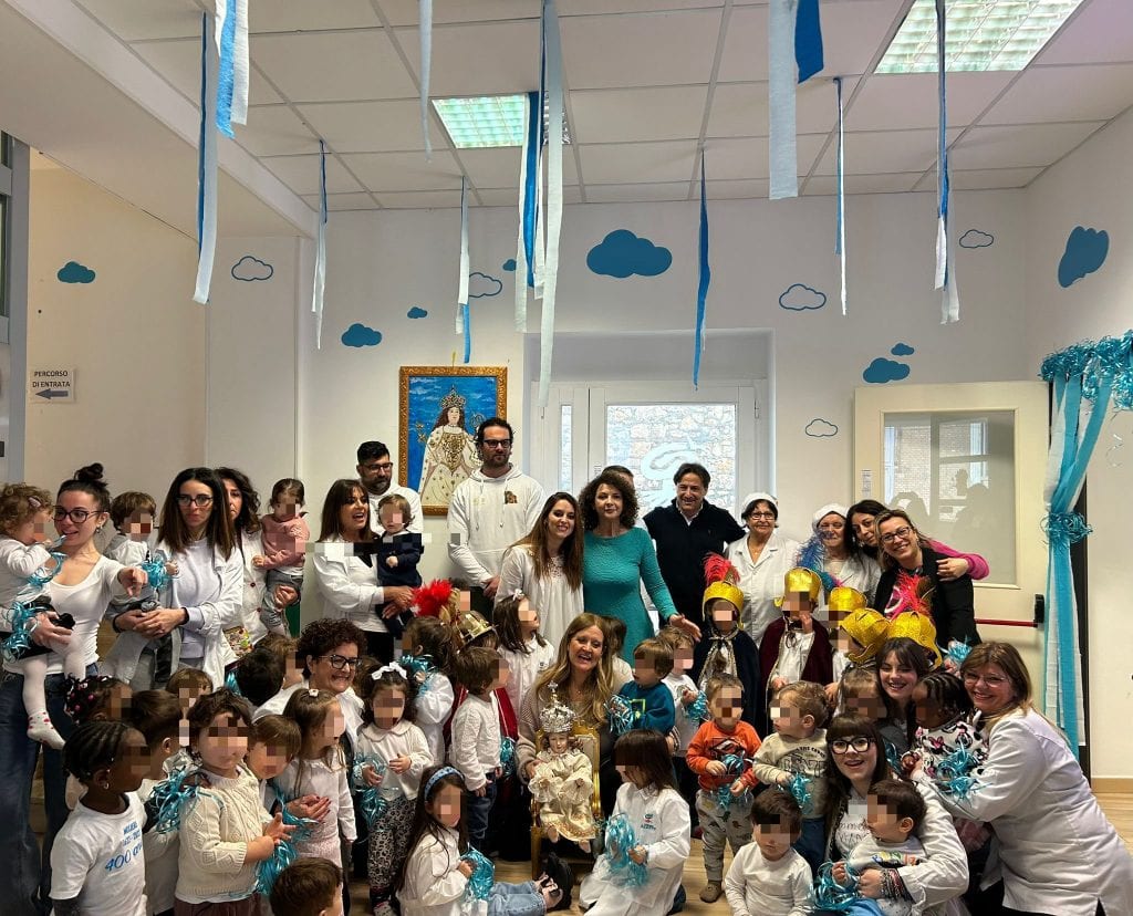 Il viaggio di Gesù Bambino è iniziato presso la Scuola del Sacro Cuore toccando poi altri plessi dell’infanzia quali “L’Albero Azzurro” presso l’Asilo Nido Comunale M. Padula di Via Gramsci, la Scuola dell’infanzia San Giovanni, il Plesso Lazazzera dell’IC Pascoli ed altri concludendosi presso le Parrocchie Addolorata e San Rocco.