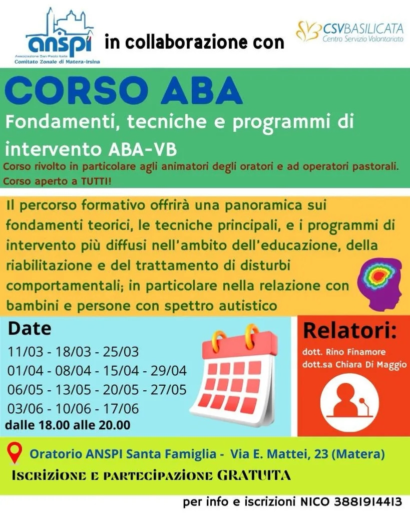 L’inclusione non è solo un concetto astratto, ma un impegno quotidiano che richiede formazione, sensibilità e strumenti adeguati. Con questa consapevolezza, l’ANSPI Zonale di Matera-Irsina, in collaborazione con il Centro Servizio Volontariato Basilicata, ha deciso di promuovere un corso di formazione sul metodo ABA-VB, rivolto ad animatori, educatori, operatori pastorali e a tutti coloro che desiderano approfondire strategie efficaci per supportare bambini e ragazzi con disturbi dello spettro autistico.