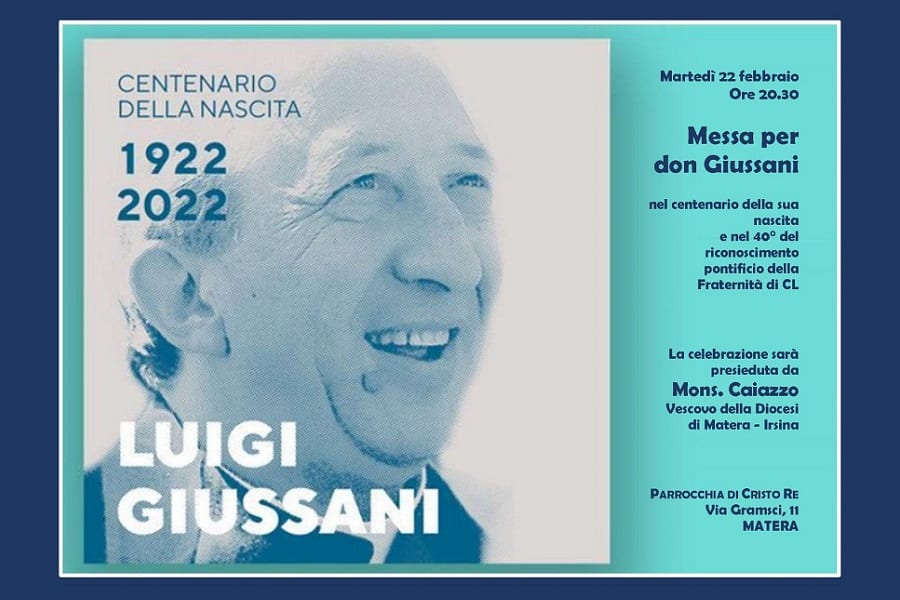 Nell’occasione del centenario della nascita di don Luigi Giussani, la comunità di Comunione e Liberazione ha indirizzato una lettera al Sindaco di Matera ed al Presidente della Provincia, quali massimi rappresentanti istituzionali del territorio, con l’invito a partecipare alla celebrazione eucaristica del 22 febbraio.