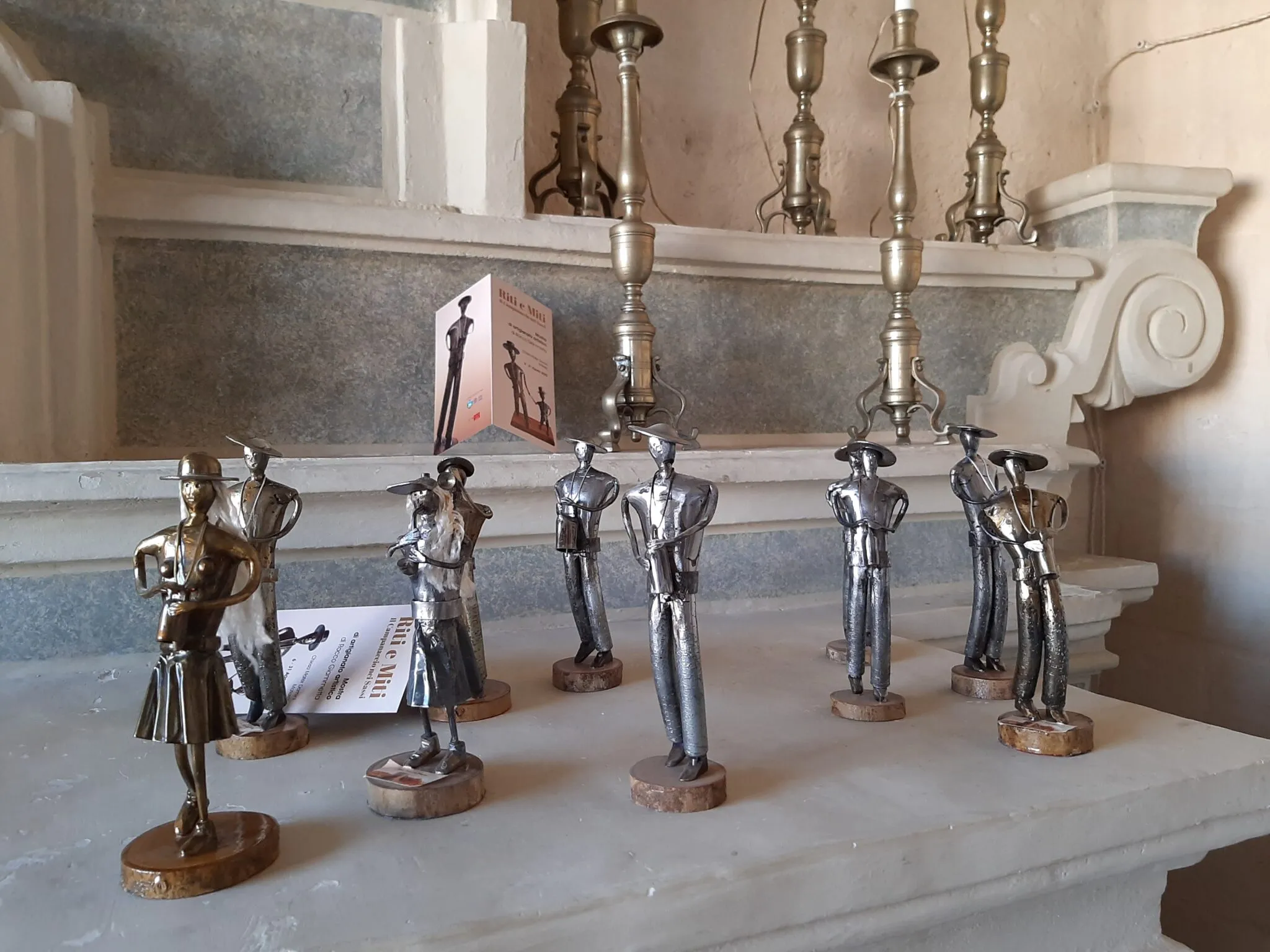 E proprio i campanacci, insieme a una trentina di miniature di personaggi ispirati ai “liberi suonatori di campanacci” e campane di varie dimensioni utilizzate durante la due giorni (15 e 16 gennaio) a San Mauro Forte, sono i protagonisti della mostra “Riti e Miti. Il Campanaccio nei Sassi”, fino al 31 agosto nella chiesa Mater Domini in piazza Vittorio Veneto a Matera. Li ha realizzati l’artista Rocco Giammetta che da una ventina d’anni (“Da quando sono in pensione” precisa) si diletta a forgiarli e lo fa con fierezza perché sono anche i suoi i campanacci a riecheggiare durante la festa. E se non è da tutti realizzarli, non è neanche da tutti provare la stessa passione, fortissima, nei confronti di una tradizione che, fatta salva la pausa imposta dalla pandemia, si perpetua nel tempo: Rocco Giammetta, classe 1940, è un artigiano d’altri tempi che trasferisce su sculture di ferro – in modo indelebile – le radici profonde e l’attaccamento a una terra, a un paese, San Mauro Forte ispirandosi al “Campanaccio”. L’unico cruccio che Rocco confida è l’assenza di giovani desiderosi di imparare. Per ora, solo suo nipote Simone, di 14 anni cerca di carpirne i segreti.