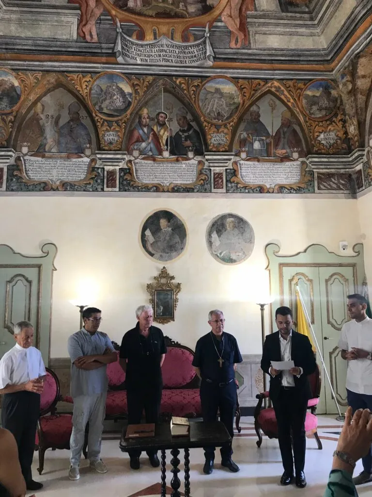 Oggi, alle 12, presso il Salone degli Stemmi dell’Episcopio, si è svolta la “declaratio” – atto pubblico di dichiarazione del candidato al diaconato Davide Fusiello tenuto alla presenza dell’Arcivescovo e di due testimoni. Di seguito alcune foto della Declaratio: