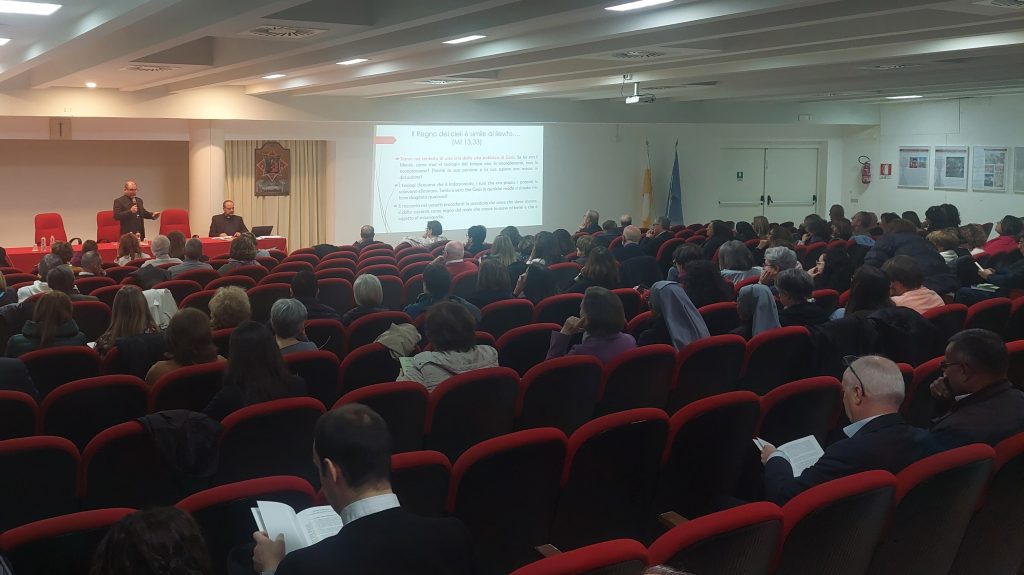 Circa 250 tra sacerdoti e collaboratori, che il vescovo definisce “cinghia di trasmissione dell’azione ecclesiale”, sono riuniti attenti e partecipi nell’auditorium della Casa Sant’Anna.