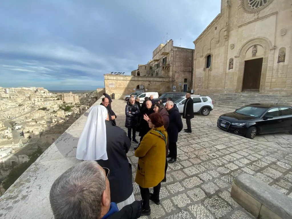 La breve visita di cortesia della delegazione cesenate si è conclusa questa mattina con la visita alla Cattedrale di Matera e al Museo diocesano. Oltre a mons. Douglas Regattieri, attuale Amministratore apostolico della Diocesi di Cesena-Sarsina, erano presenti il vicario generale don Pier Giulio Diaco, il vicario per la pastorale don Walter Amaducci, l’economo diocesano don Marco Muratori, il direttore dell’ufficio diocesano arte sacra Marino Mengozzi, suor Daniela Scarpellini madre generale delle suore francescane della sacra famiglia, Floriana Tappi segretaria della Caritas diocesana e referente del servizio diocesano tutela minori, Giorgio Pollastri della comunità papa Giovanni XXIII, Francesco Zanotti direttore del settimanale diocesano Corriere Cesenate.