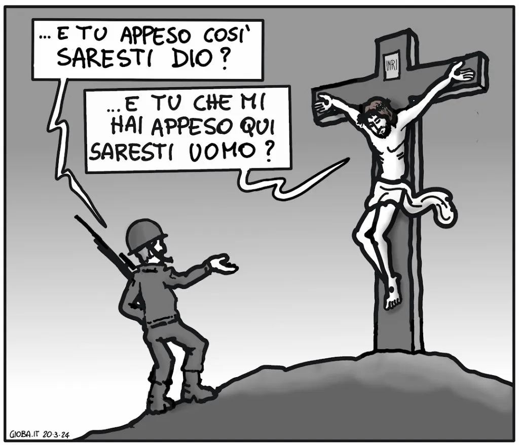 Il segno duplice di morte e vita che la liturgia ci propone con la proclamazione dei due passi evangelici dell’ingresso festoso e solenne di Gesù in Gerusalemme e della passione (episodi che in quest’anno “B” ascolteremo nella versione di Marco). E la croce fiorita è segno che dall’offerta di Gesù nasce la vita: l’albero di morte diviene albero di vita, quello che campeggiava in principio al centro dell’Eden!