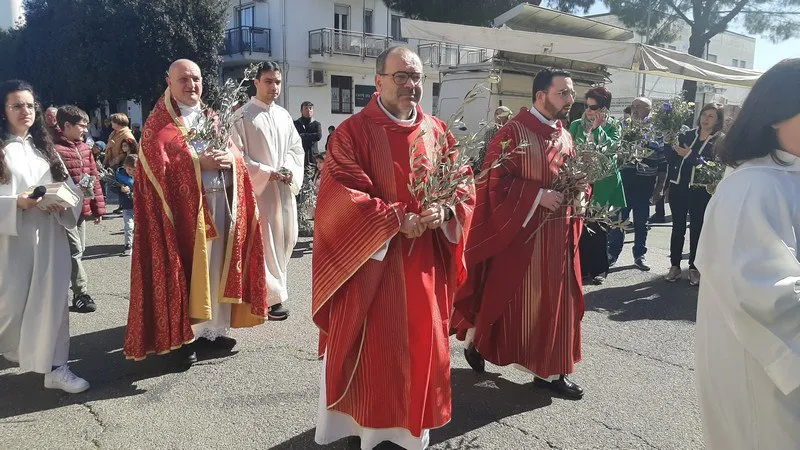 Le parole del canto “Osanna al Figlio di David, osanna al Redentore” ci rendono parte nell’oggi della liturgia di quella folla esultante che, stendendo per terra mantelli e fronde tagliate dai campi – e prendendo in mano rami di palma, segno di vittoria, secondo l’evangelista Giovanni –accoglieva Gesù che entrava a Gerusalemme per la Pasqua seduto mite su un’asina. Il seguire come popolo di Dio il sacerdote che in persona Christi guida anche quest’anno la processione, ci invita a seguire Gesù sulla via della croce e sino alla croce, più delle folle di 2000 anni fa che poi qualche giorno dopo gridarono ‘Crocifiggilo!’, per giungere con lui alla Gerusalemme del cielo.