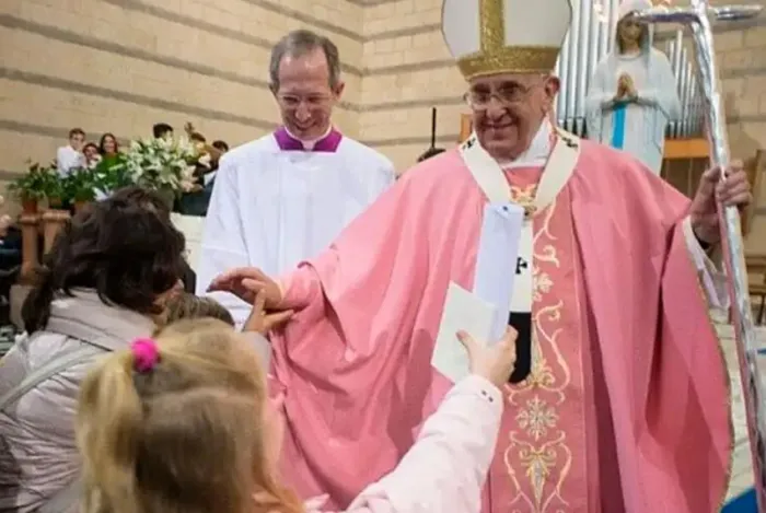 Infatti già dai tempi della messa in latino, la quarta domenica di Quaresima – subito dopo la metà di questo tempo forte – aveva questo carattere gioioso.