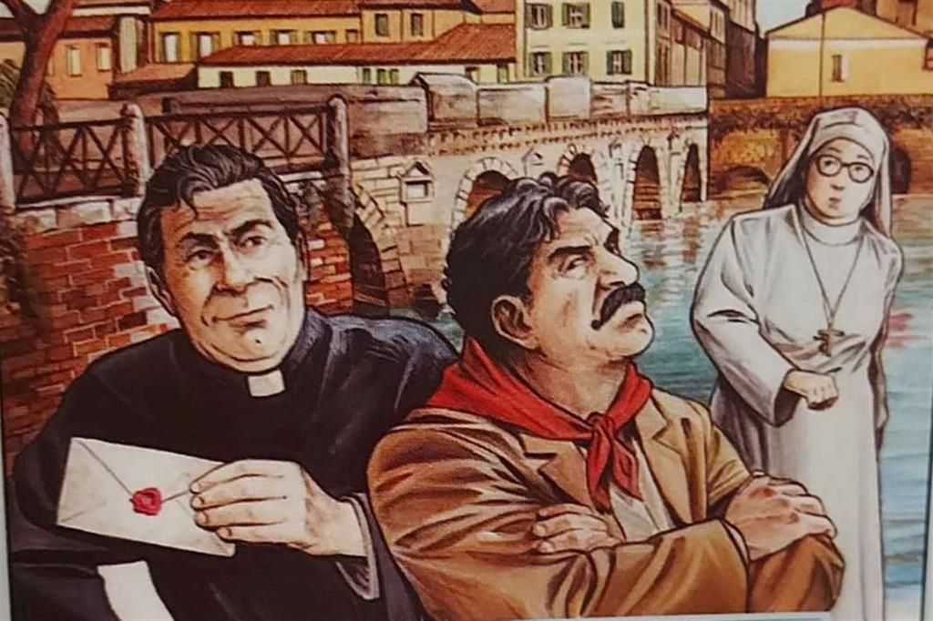 Nelle “strip” il bianco e nero ovviamente è rimasto ma i volti del parroco e del sindaco del borgo emiliano non sono più quelli che il grande schermo ci ha abituato a riconoscere nei cinque film (più uno incompiuto) della celebre saga del “Mondo piccolo” apprezzata anche in America. D’altra parte, si sa, a Giovannino non piaceva Fernandel nel ruolo del parroco. Con quella «faccia da cavallo» e il corpo non certo robusto, diceva Guareschi «non assomiglia affatto al pretone d’assalto» che lui aveva creato per i suoi racconti intrisi di fede, politica e umanità.