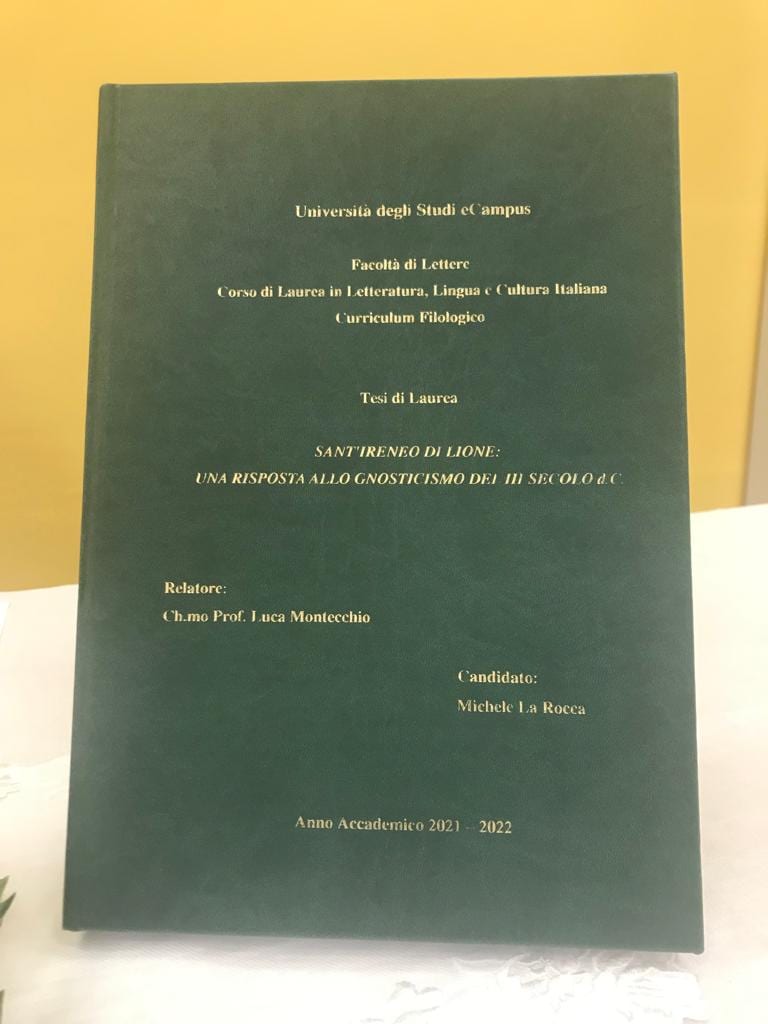 Intervistato in merito a questo suonuovo traguardo, don Michele ha risposto: “Nel mio lavoro di ricerca ho approfondito la figura di un Santo vescovo che ha combattuto una delle più grandi eresie di tutti i tempi: lo Gnosticismo, sorto in seno alle prime comunità cristiane del III secolo. Oltre a scandagliare il fondale storico della vita della Chiesa, in quel periodo particolarmente perseguitata dall’Imperatore Marco Aurelio, il mio obiettivo è stato quello di dimostrare come anche all’interno della Chiesa ci siano state figure autorevoli come Sant’Ireneo, che hanno saputo difendere la dottrina del Vangelo dagli attacchi degli eretici. È stata una piacevole avventura poter raccontare con la storiografia e le fonti antiche alla mano quanto difficile sia stato questo periodo per i cristiani perseguitati e uccisi nel difendere la bellezza della fede e la loro libertà di pensiero. Tale ricerca mi ha permesso anche di fare un confronto con la storia attuale ed evidenziare, in particolare nel quarto capitolo, le sfide che la Chiesa oggi affronta con la sopravvivenza del pensiero gnostico che nei secoli è mutato nella forma e nel significato. Primo tra tutti il New Age”.