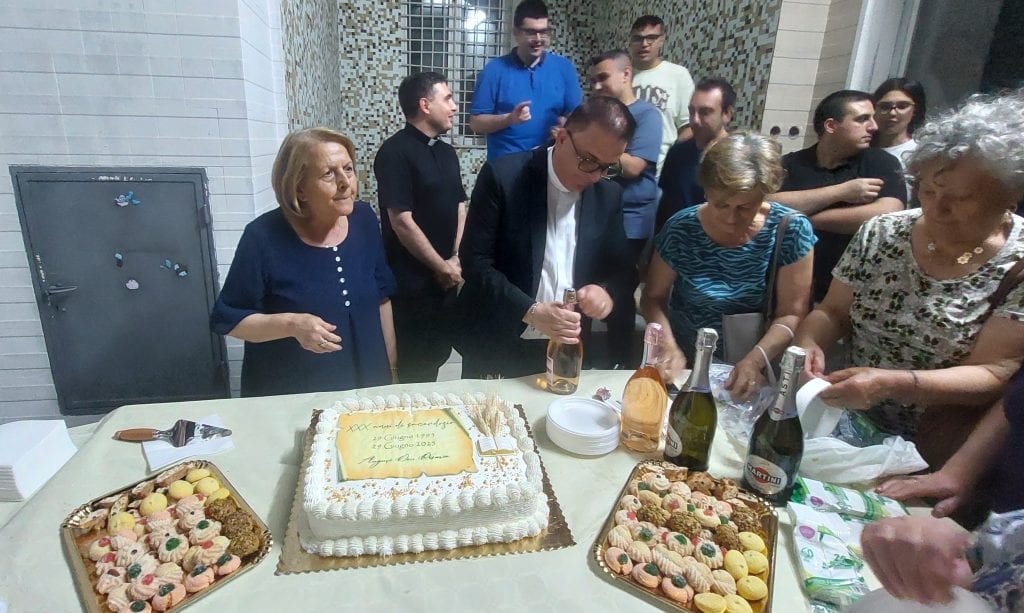 “Che dirti, caro don, la tua missione la vivi bene in qualsiasi occasione”, son le parole che hanno scritto i tuoi parrocchiani sul tuo biglietto di auguri. Tu possa continuare, allora, a pronunciare ogni giorno il tuo “eccomi” incondizionato al Signore e a servirlo offrendo la vita per la tua comunità! Per godere del centuplo!