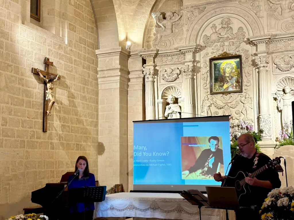 Per circa un’ora, in un clima di silenzio e raccoglimento, sono risuonate canzoni non nate per l’uso liturgico ma piene di invocazioni e di domande rivolte a Maria di Nazareth.