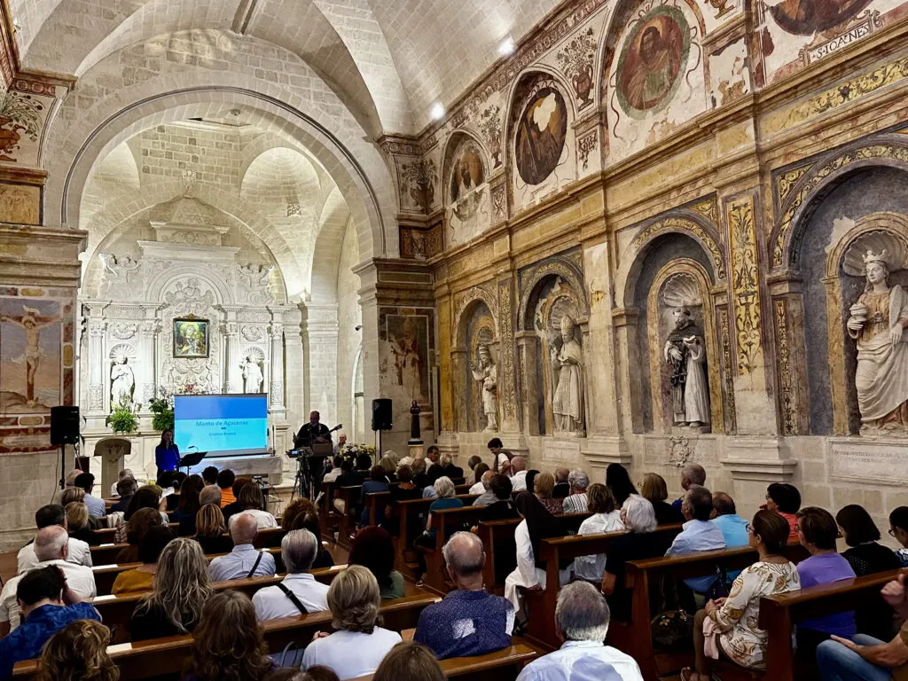 Il pubblico che ha riempito la chiesa è stato partecipe di una sorta di sacra rappresentazione, arricchita dalla proiezione di immagini e dall’illustrazione dei brani in programma.