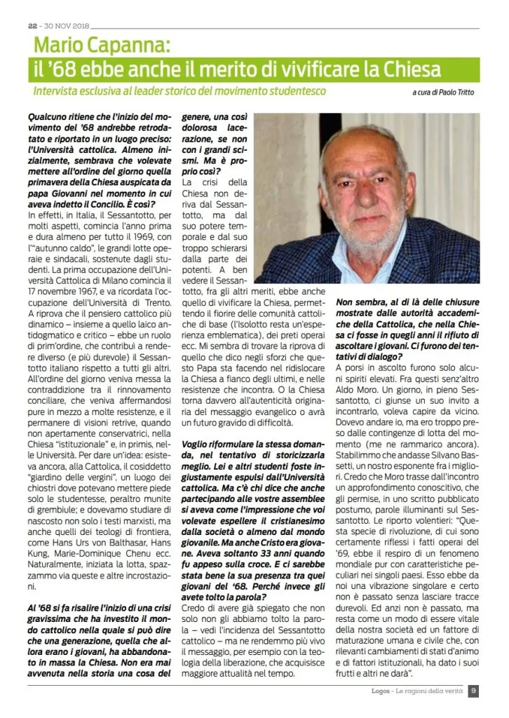 Già su questo giornale qualche anno fa abbiamo pubblicato un’intervista a Mario Capanna, nella quale il leader del movimento studentesco tornava su questo argomento.