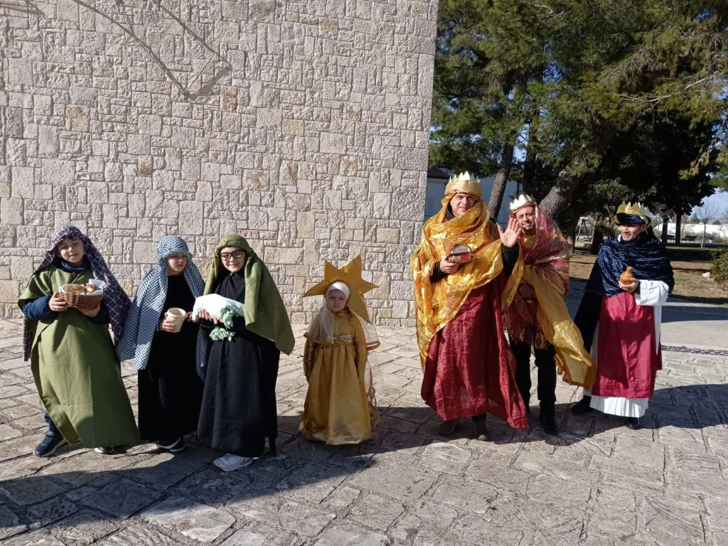 In fila i pastori e, preceduti da una piccola e graziosa stella cometa, i Re Magi. Dopo aver spiegato il significato dei loro doni, si è sottolineato come i Magi rappresentino tutti gli uomini di ogni parte della terra ai quali Cristo si è manifestato come nostra luce, venuto a salvarci e a fare di tutti una sola famiglia, la famiglia di Dio.
