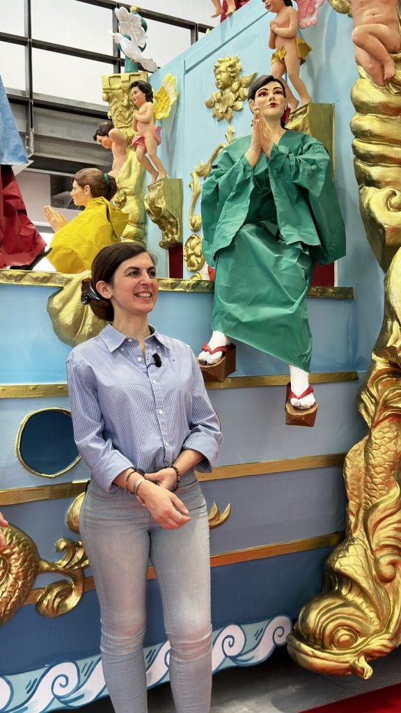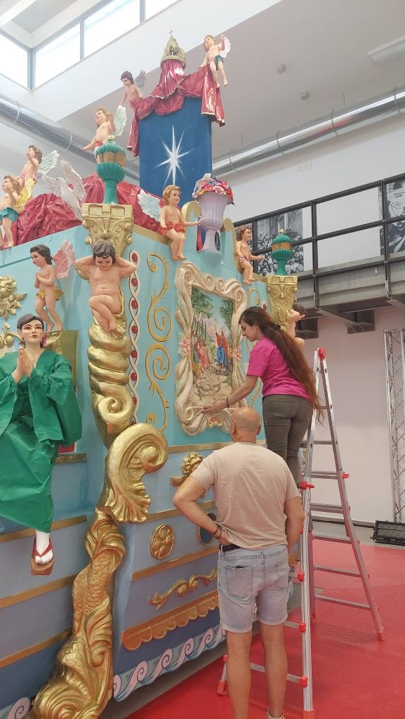 Cosa buona è giungere preparati nella fabbrica del carro per poter cogliere la profondità dei tanti messaggi che trasmette questa bellissima opera d’arte che – davvero che peccato! – purtroppo vivrà solo per altri nove giorni.