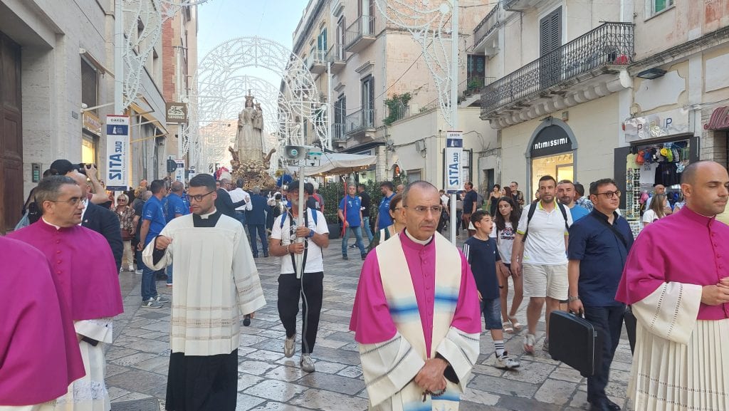 Anche una tradizione che si sta consolidando, la processione con la statua della Madonna, per la prima volta in cammino nella nostra città con i nuovi abiti realizzati dallo stilista Miglionico, attraverso via del Corso, piazza Vittorio Veneto e via delle Beccherie, per far ritorno in Cattedrale dove sarà oggetto di venerazione in questi altri otto giorni di novena alla Madonna.