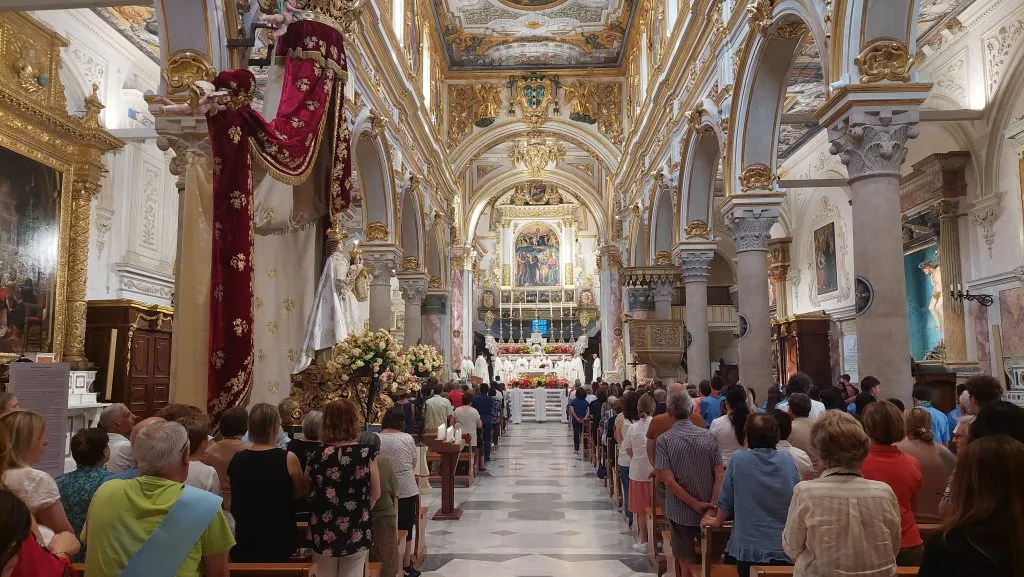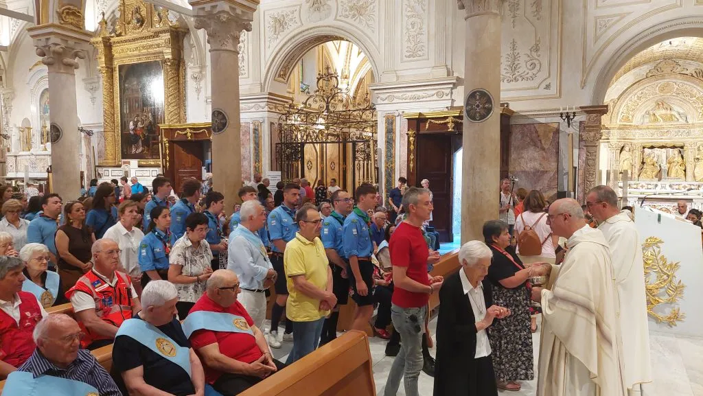 I fiori variopinti ai piedi e alle spalle dell’altare esprimono il clima della festa. Diversi i fedeli che partecipano non solo nel giorno in cui la propria parrocchia o associazione è chiamata ad essere presente, per dare una mano nella recita di una decina di rosario e nell’animazione della liturgia. Non pochi i fedeli che colgono l’occasione per accostarsi al sacramento della riconciliazione.