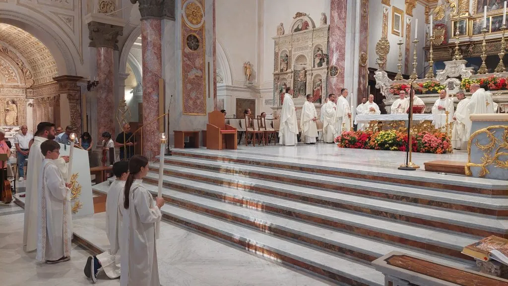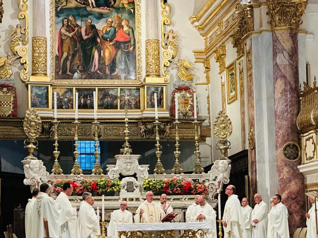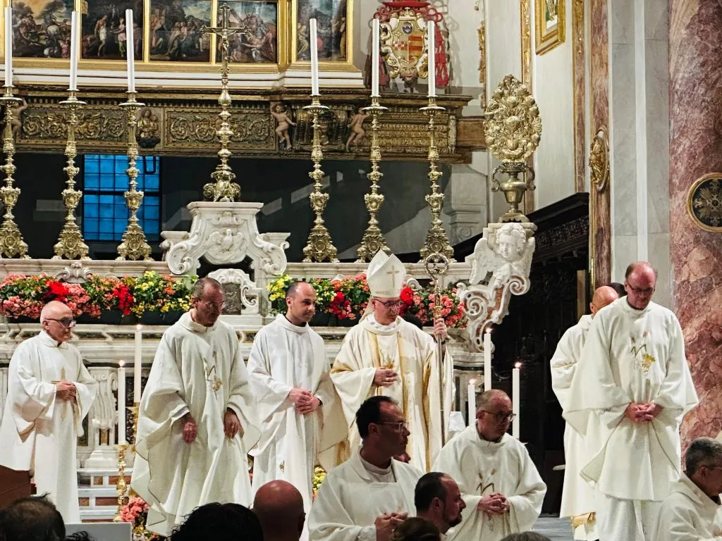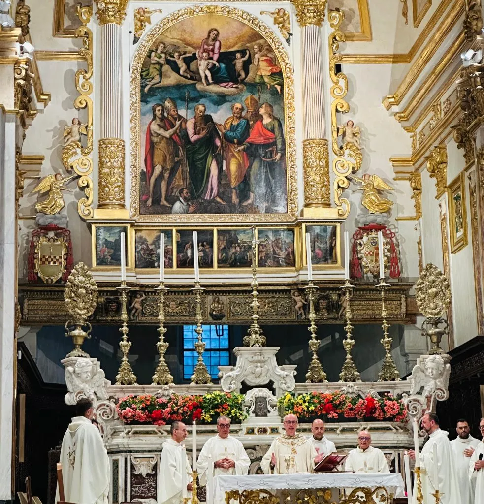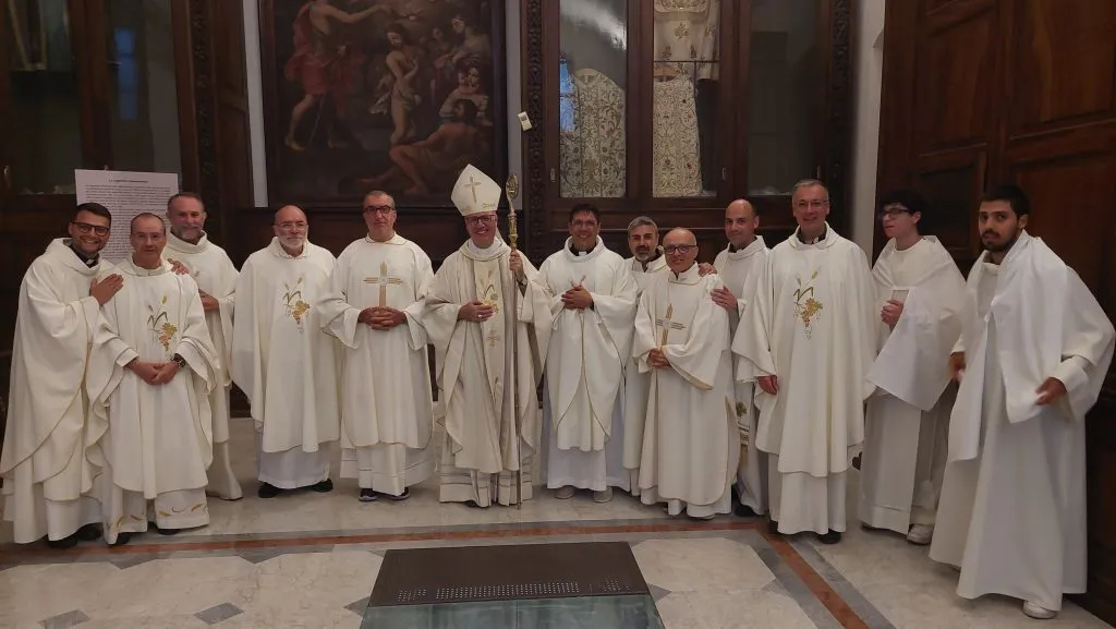 il clero concelebrante con il vescovo Davide insieme ad alcuni ministri (25/06/25)