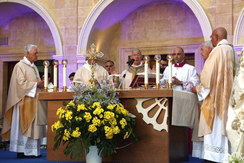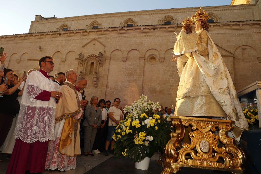 Oggi ci ritroviamo davanti a questa Basilica Cattedrale, casa Madre di tutta la Chiesa di Matera-Irsina, dove i figli trovano sempre presente, attenta e vigile, la Madre che ascolta, consola, consiglia, asciuga le lacrime, presenta al Figlio, Gesù, ogni dolore e sofferenza, si prende cura delle nostre miserie e dell’umanità intera, abbraccia tutti e mostra il suo amore. E’ per tutti la Madre della Bruna.