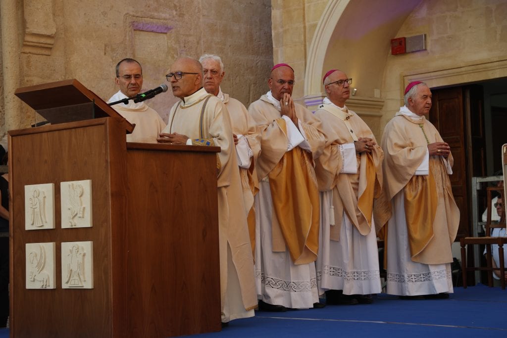 Carissimi confratelli nell’episcopato, Mons. Ligorio, Mons. Carbonaro, Mons. Pennacchio, Mons. Colaianni, amici sempre vicini; carissimi fratelli e sorelle della sempre amata Chiesa di Matera-Irsina; gentilissime Autorità civili e militari presenti, signor Prefetto, signor Sindaco, confratelli nel sacerdozio, diaconi, religiosi e religiose, Associazione Maria SS. Della Bruna, confraternite varie e quanti, a diverso titolo, in questi anni avete iniziato a seguire la Madonna della Bruna ascoltando la voce del Figlio Gesù: Pace a tutti voi. Con queste parole mi rivolsi a quanti erano presenti nel Palamilone di Crotone nel 2016 al termine della consacrazione episcopale; con le medesime parole di Gesù risorto vi saluto in occasione di questa mia presenza in mezzo a voi.