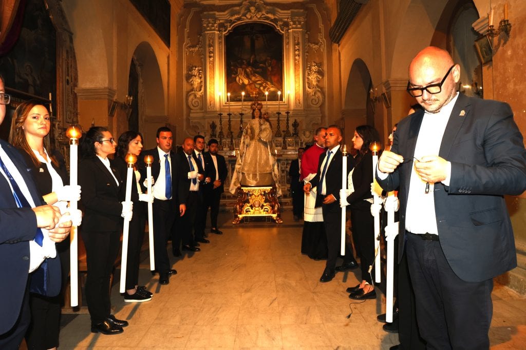 E sempre ai piedi della croce Gesù ci consegna la Madonna: “Ecco tua Madre”. Sull’esempio di Giovanni ognuno di noi è chiamato ad accoglierla in casa, cioè nella sua vita, certo e sicuro che solo lei può indicare la Via, la Verità e la Vita, cioè Gesù. La Chiesa nasce in questo contesto cruento della storia. Dal cuore squartato di Gesù scaturiscono sangue e acqua, simboli dei sacramenti del battesimo e dell’Eucaristia. Riscoprendo il nostro Battesimo e l’importanza della partecipazione all’Eucaristia, mentre i grandi della terra giocano con missili supersonici, con droni intelligenti, capaci di distruggere l’innocenza, noi, per quanto piccoli e impotenti, siamo chiamati a costruire un’umanità nuova sulle macerie che altri hanno procurato.